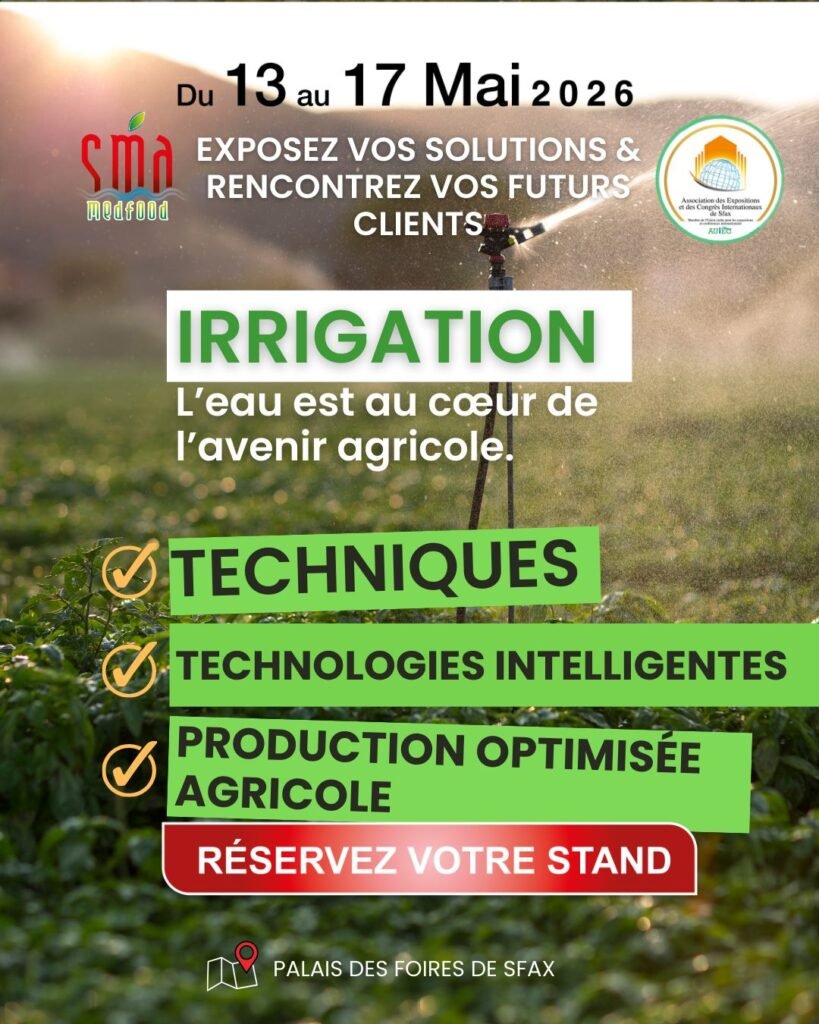 C’est dans ce contexte que le Salon Agriculture & Agroalimentaire Méditerranéen – SMA Medfood se positionne comme une plateforme stratégique pour présenter les dernières technologies d’irrigation et accompagner la transition vers une agriculture plus durable et performante.